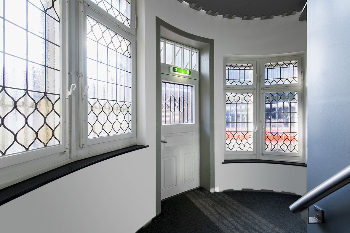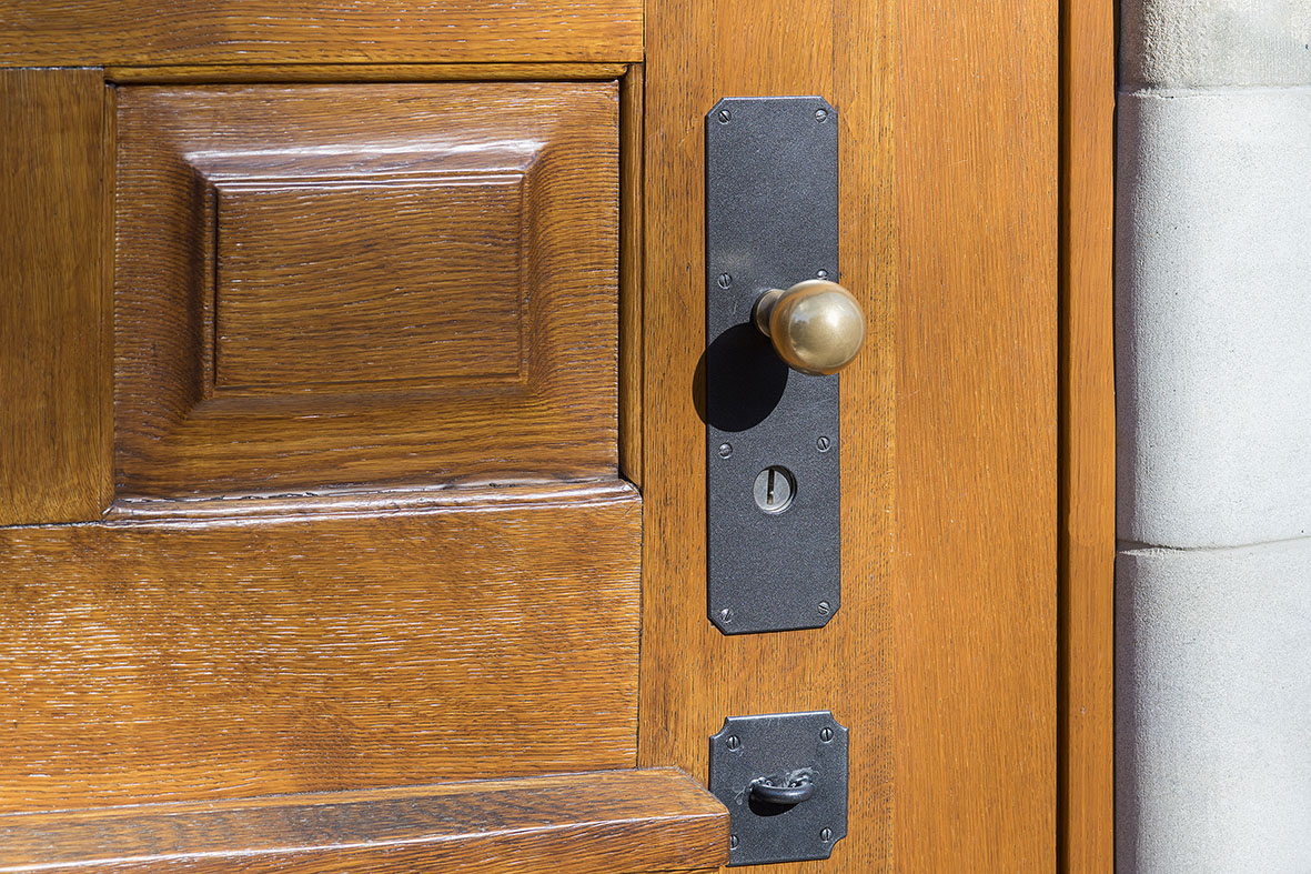 Zusätzlich durften wir eine historische Türe mit einem massiven Eichendoppel und Glasausschnitt rekonstruieren. Als Rohling verwendeten wir ein modernes Türblatt unseres Lieferanten Riwag Türen, welches die aktuellen Anforderungen erfüllt.